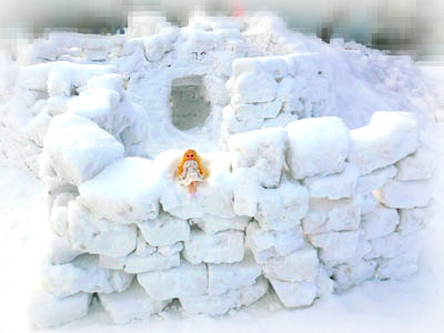 かまくらの様な秘密基地の様な、アナ雪も吃驚?な立派な雪のお城!