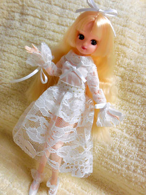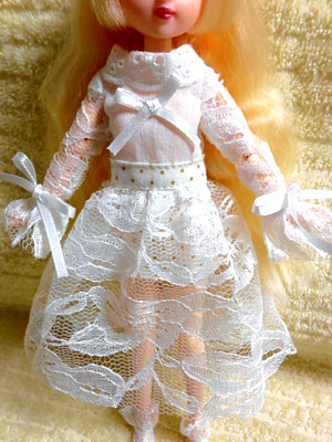 先ずは虹子ちゃんから。真っ白な生地とレエスだけを