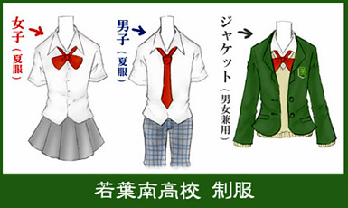 此方↓が若葉南高校の制服(資料用デザイン画)で御座居ます。
