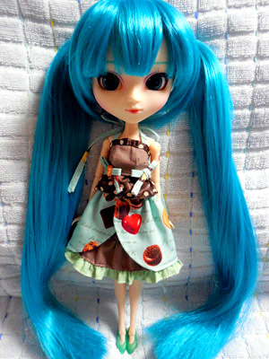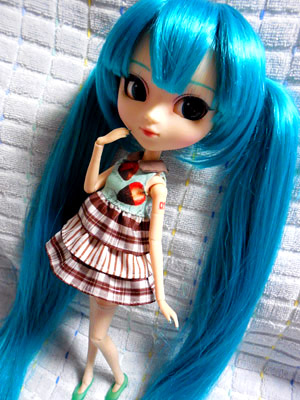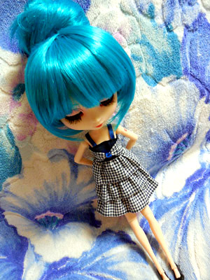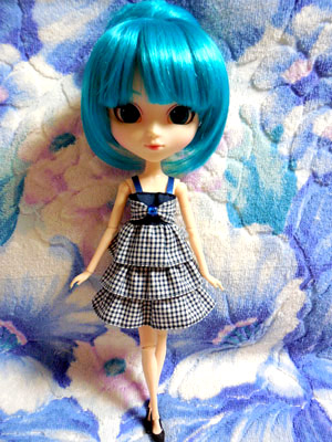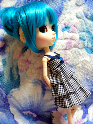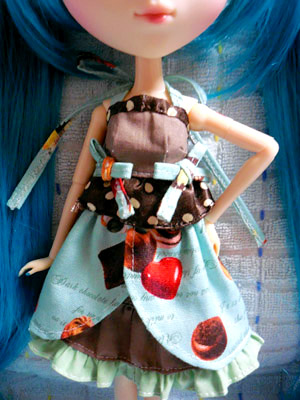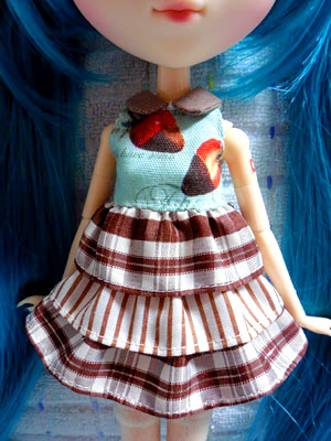 チョコ色のスカートを付けてミニワンピにしてみたよ。