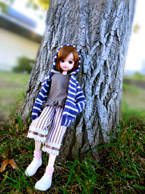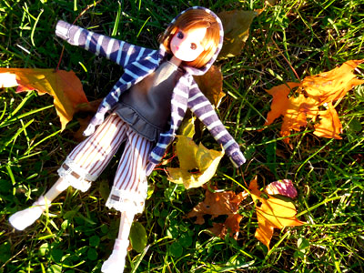 落葉と一緒に~☆ リカちゃんだと葉っぱがデカく見えるなぁw