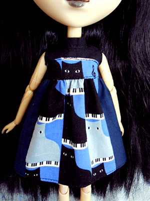 猫ピアノ柄の、名付けて “こっち見んなワンピ” (^q^)