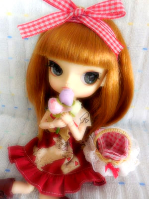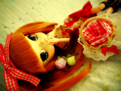 お花の入った籠を持ってポーズをとる赤頭巾ロッティ